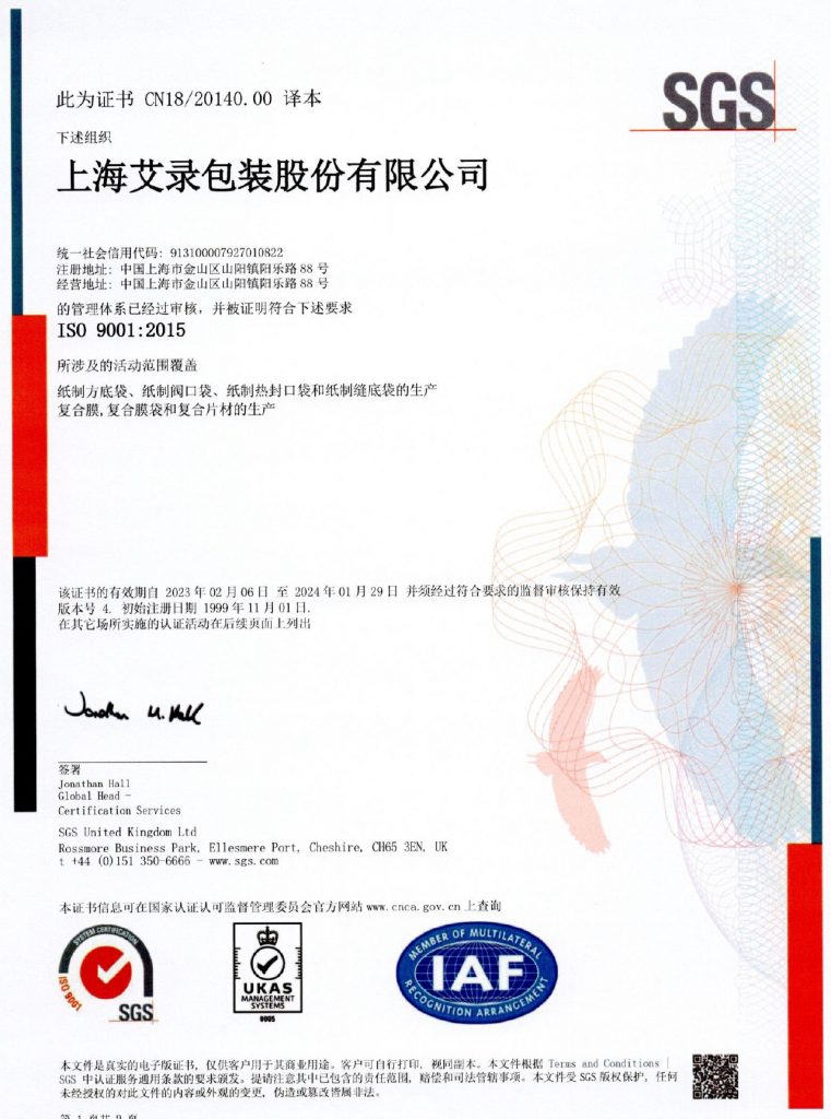 上海艾錄包裝股份有限公司(證券簡稱:上海艾錄 證券代碼:301062)成立于2006年,主要從事工業(yè)用紙包裝、塑料包裝及智能包裝系統(tǒng)的研發(fā)、設(shè)計、生產(chǎn)、銷售以及服務(wù)。經(jīng)過多年的持續(xù)發(fā)展,公司已由國內(nèi)領(lǐng)先的工業(yè)用紙包裝公司,成長為一家工業(yè)與消費包裝產(chǎn)品皆備的軟體包裝一體化解決方案提供商,并通過智能化、柔性化、定制化的生產(chǎn)能力,為妙可藍多、蒙牛、光明、雀巢、菲仕蘭、 陶氏、巴斯夫、沈陽化工、佰利聯(lián)、德高、立邦、東方雨虹、美巢等國內(nèi)外知名工業(yè)及消費類企業(yè)客戶提供包裝解決方案所需的相關(guān)產(chǎn)品。